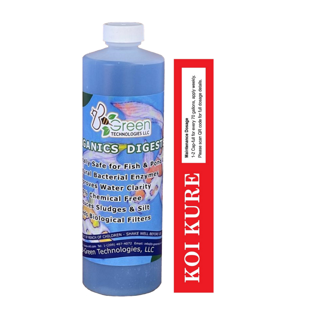 Koi Kure is a specific blend of concentrated microbes that promotes healthy Koi by eliminating conditions necessary to develop “Hole in the Side Disease.” This is a specific blend of naturally occurring bacteria & enzymes, designed to work in water that is infected with Aeromonas, Pseudomonas, and other pathogenic bacteria. Also, this compares favorably, both price and quality-wise, to any similar product on the market.
