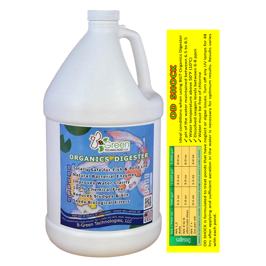 OD SHOCK is designed for ponds that were previously non-treated with OD overruns by algae.